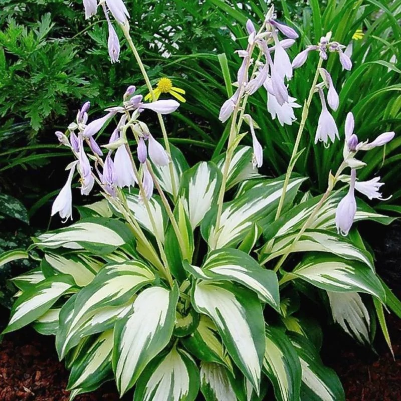 Хоста Сhristmаs Саndу – роскошное, очень яркое и нарядное растение, которое не зря назвали «Рождественской конфеткой». Кудрявые, сильно волнистые пестрые листья, которые не выгорают даже на ярком солнце, придают многолетнику особую декоративность. Невозможно не заметить их широкую, сердцевидную кремово-белую середину в окружении неровного темно-зеленого окаймления. Дополнительный эффект создают распустившиеся в июле бледно-лавандовые цветы, черешки которых при большом количестве солнечного цвета приобретают розовый окрас. Гибридный сорт весьма неприхотлив, морозостойкий, любит увлажненные, богатые питательными веществами почвы и может сохранять свою декоративность в любом уголке сада.